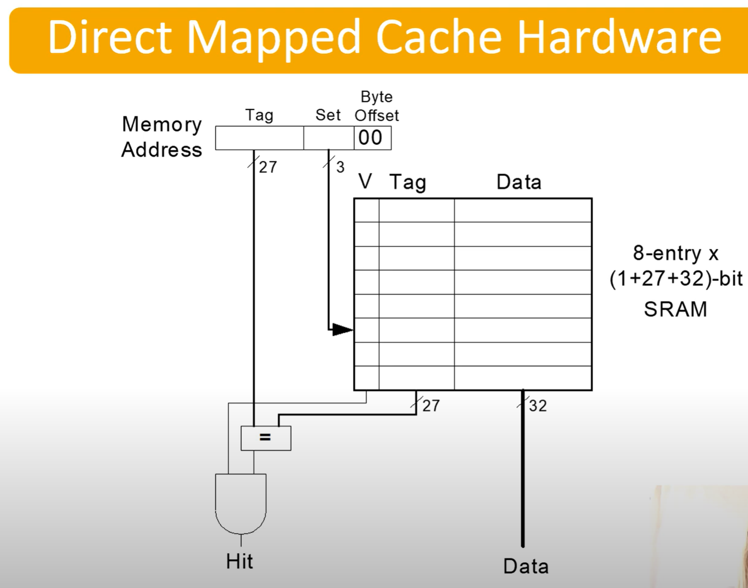 | Tag: 27 bits | Set: 3 bits | Byte Offset: 2 bits |