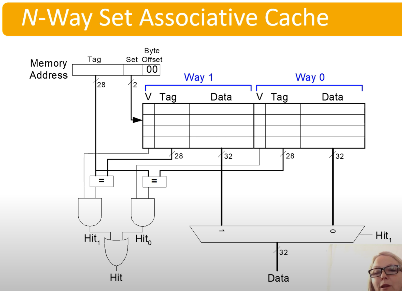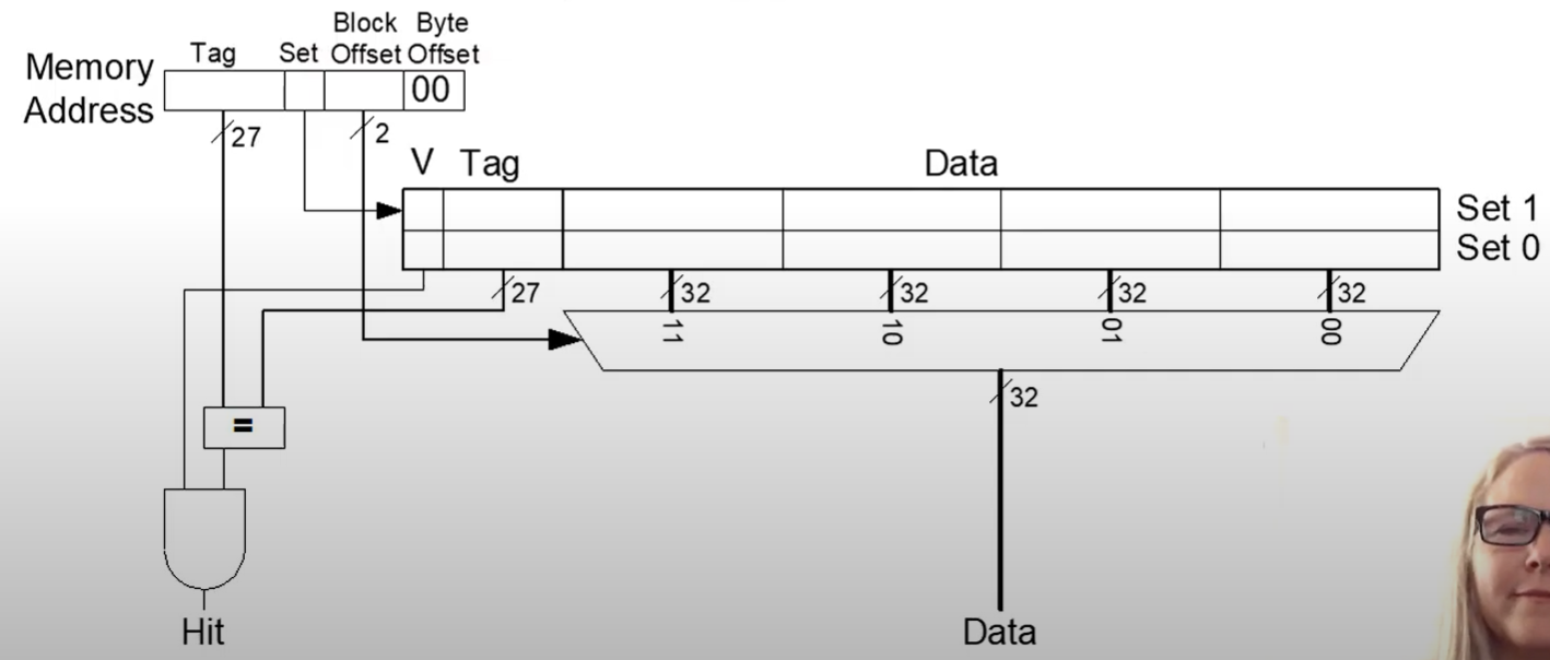 We can see that it will check both data in parallel, then use the MUX to determine which data to extract on hit