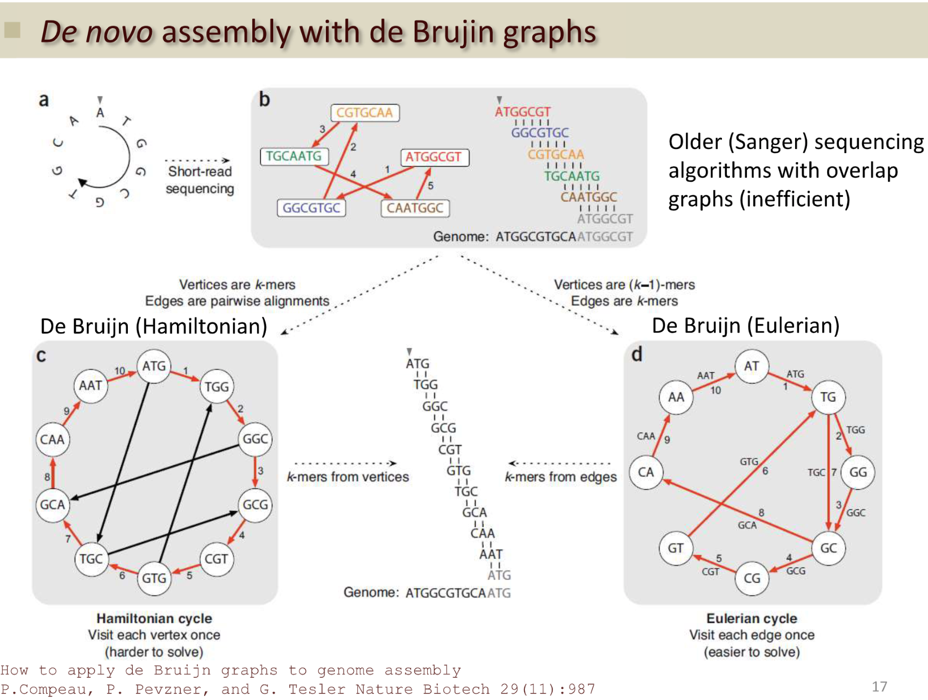 Hamiltonian cycle instead reads - use k-mers of length 3: path that visits each node only once returns to the starts