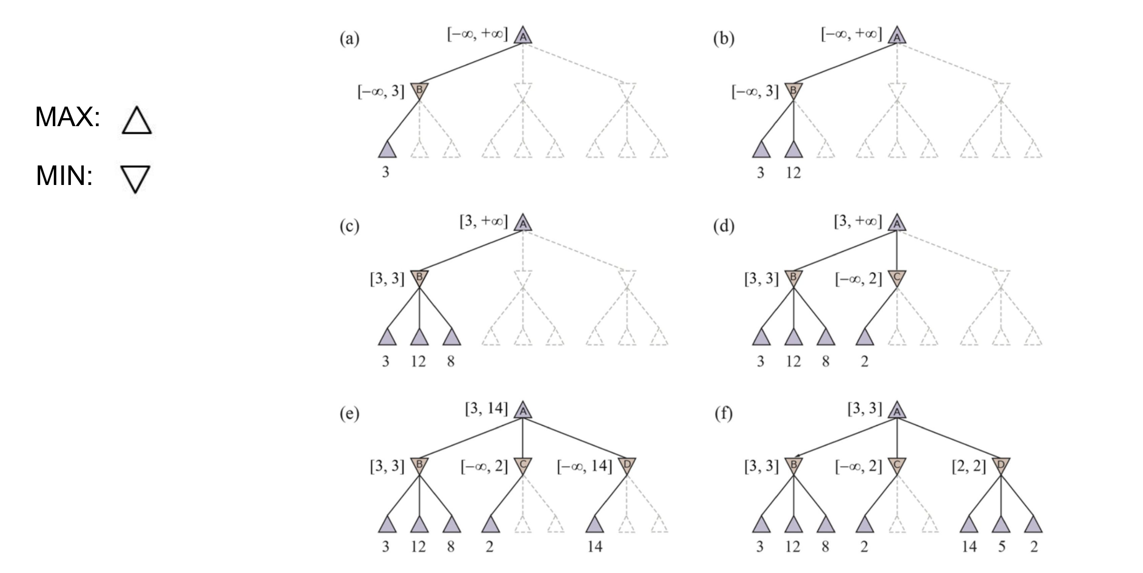 In a MAX node: We know that a higher up MIN node won’t consider this MAX node if it has the option to choose a node that is greater than the smallest value found so far.