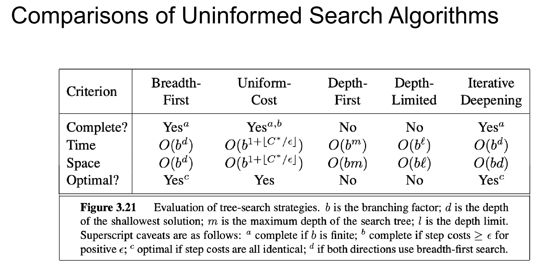 - Cannot be characterized in Time/Space complexity with b, d, m