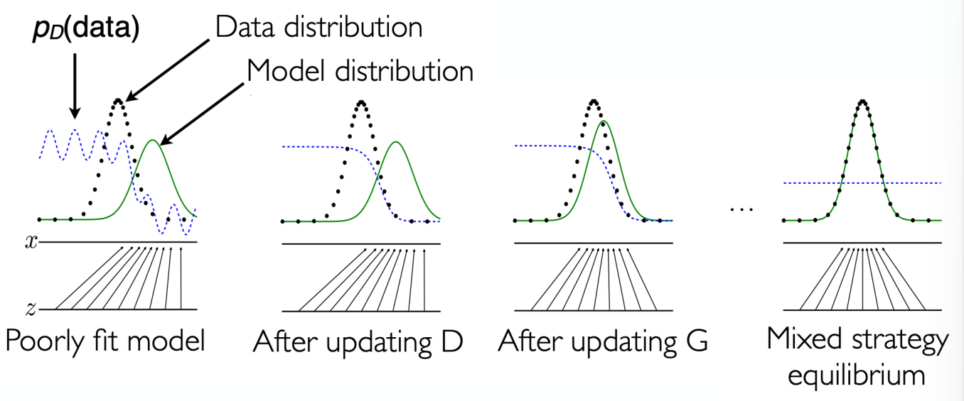 - The game between generator and discriminator