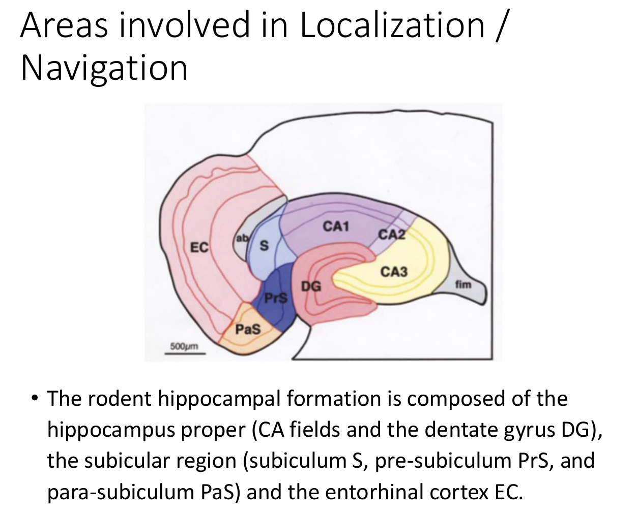 - Head direction specific cells discovered James Ranck (1984) in dorsal presubiculum (also called postsubiculum)