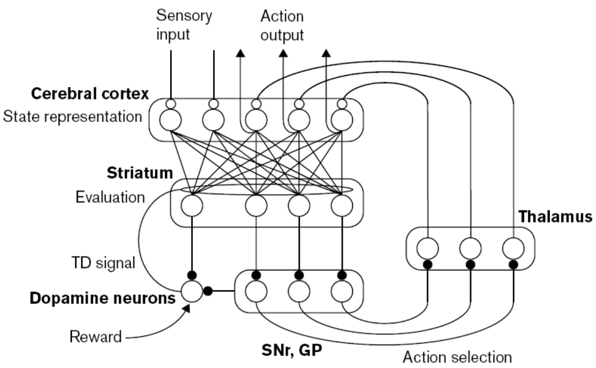The basal ganglia might play an important role in reinforcement (reward-driven) learning