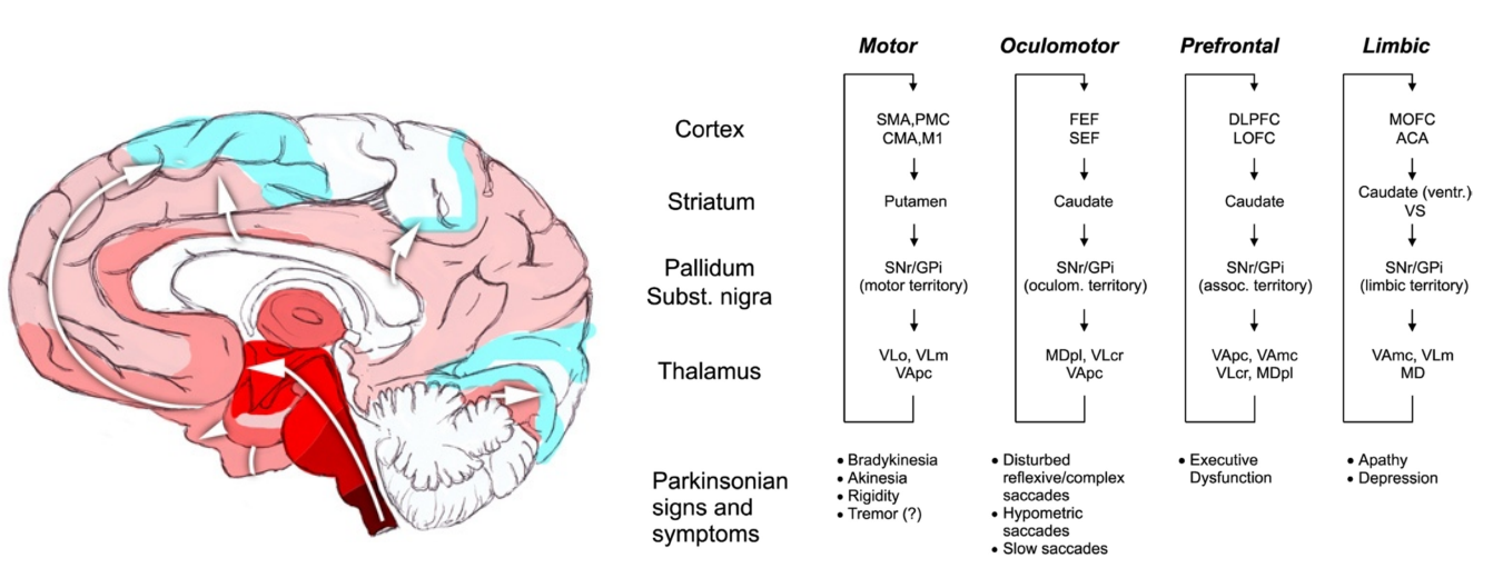 - Parkinson’s affects the motor loop most severely befoer progressing to other loops