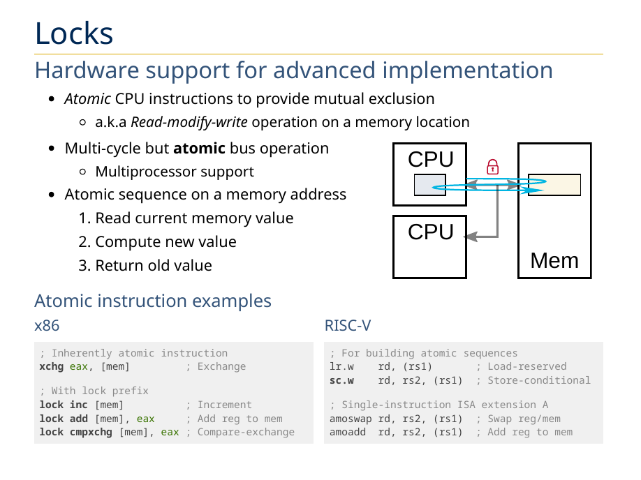 - IE allows a CPU to dominate/ensure that memory read/modify/write operation is safe, despite hardware implementation regarding interrupts/competition