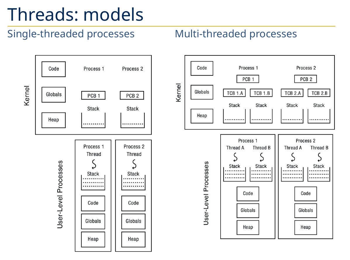 - Multi-threaded processes with user threads