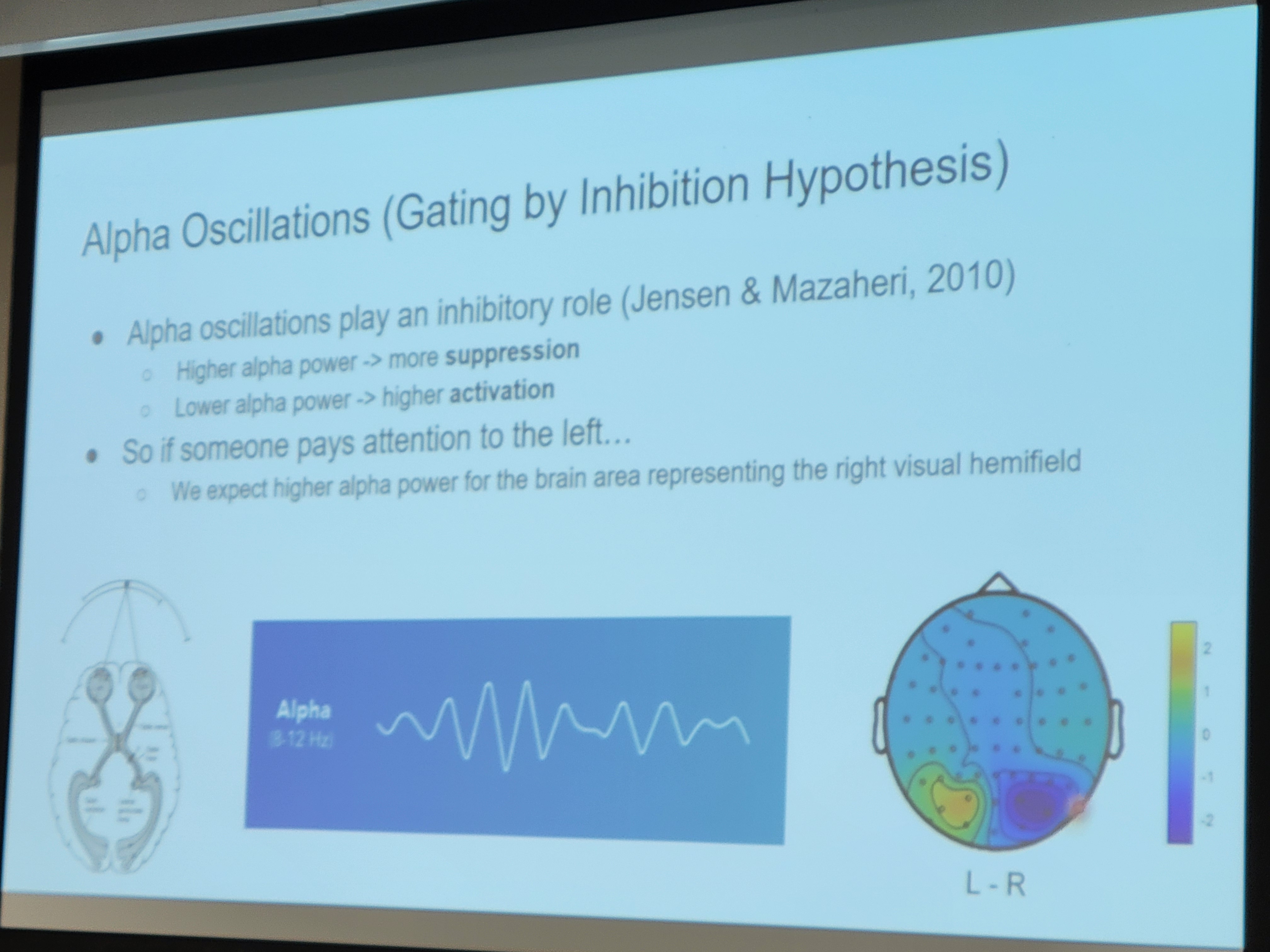- You will see more alpha band power when you are inhibiting something