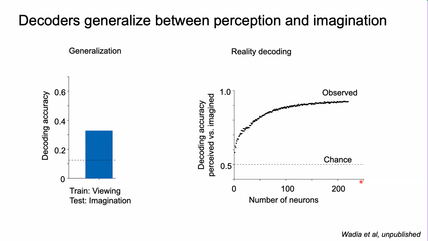 - A lot of cells that activate only for imagination IE, don’t know their coding