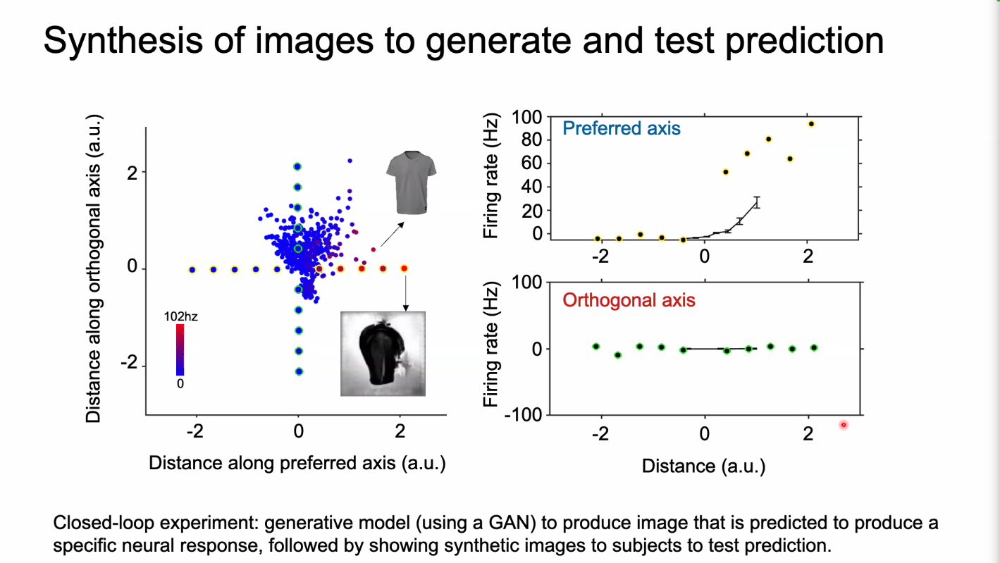 - “Produce image predicted to produce a specific neural response, followed by showing synthetic images to subjects to test prediction”