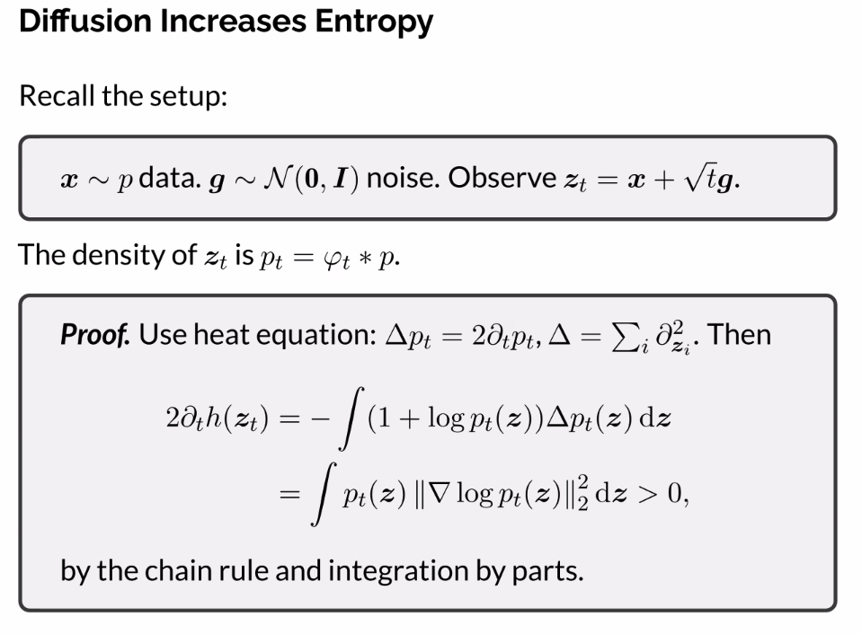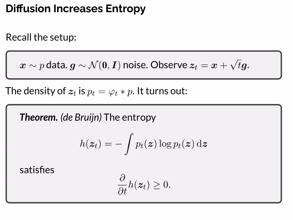 - The entropy increases as we add noise