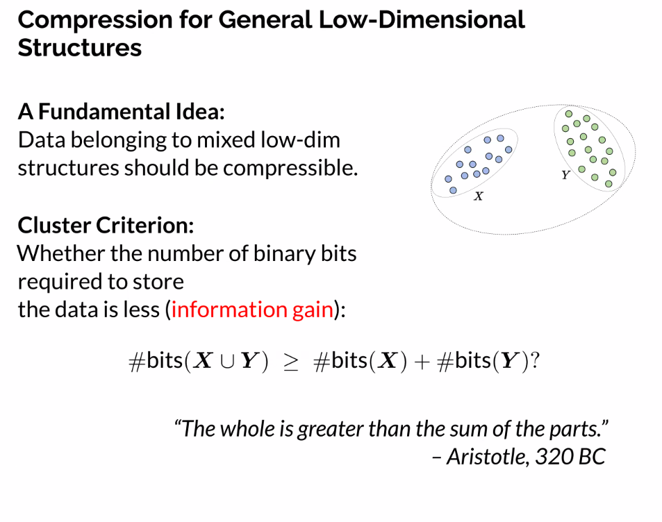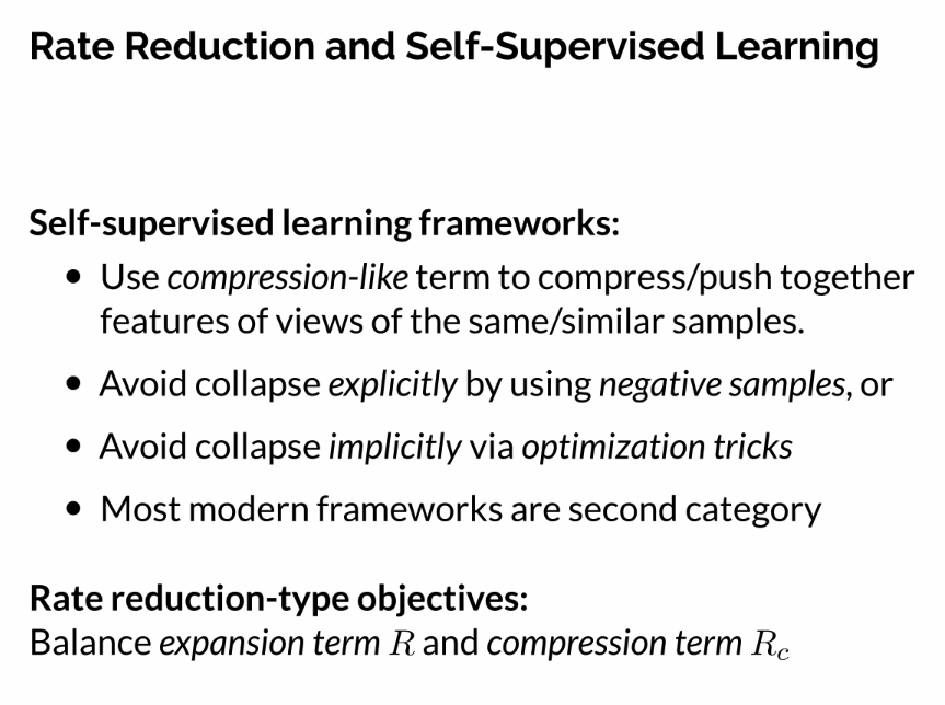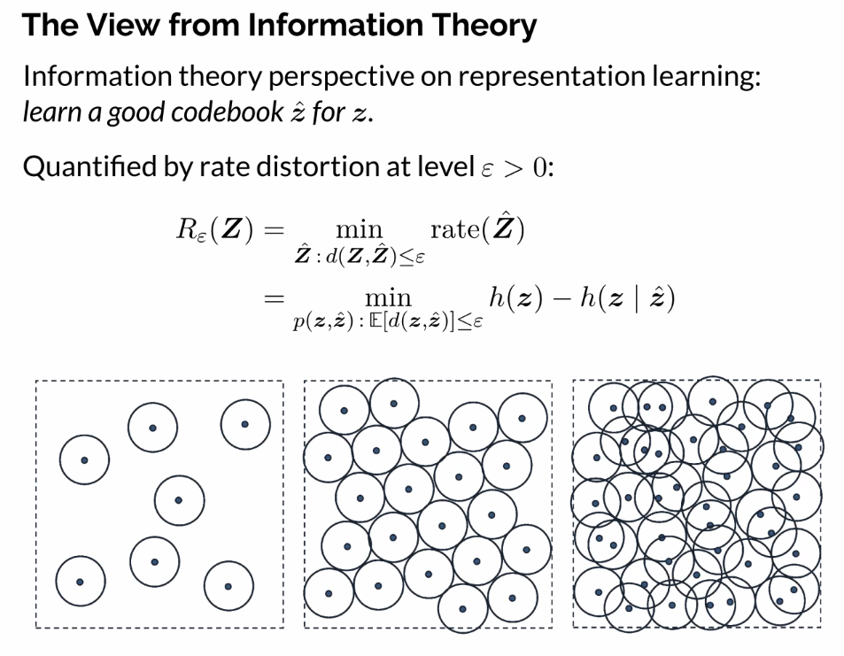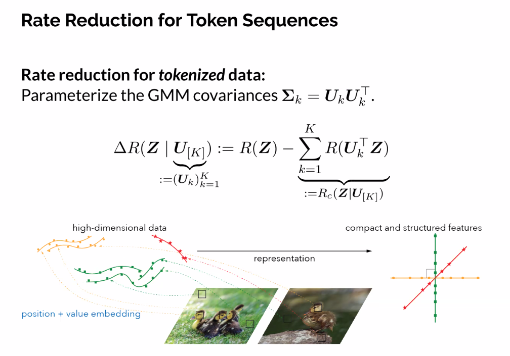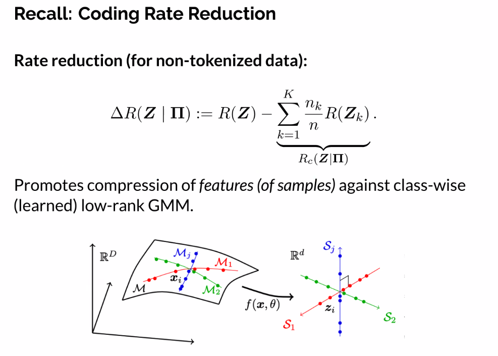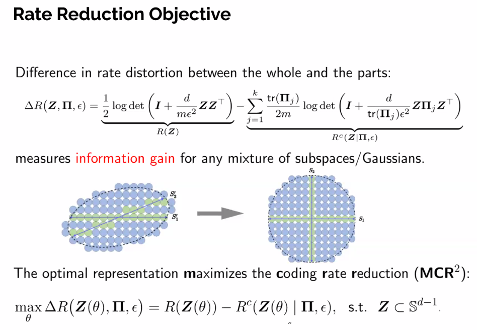 - Contextualisze representation learning wrt the pursuit of low-dimensional distributions