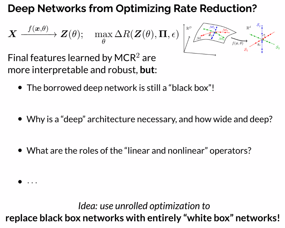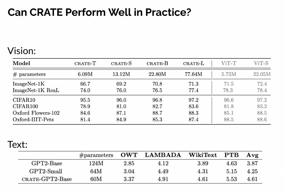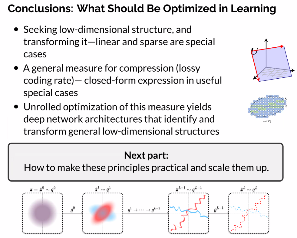 - Resulting architectures sometimes very similar to practice (e.g., CRATE). We can both understand practice and improve on it.